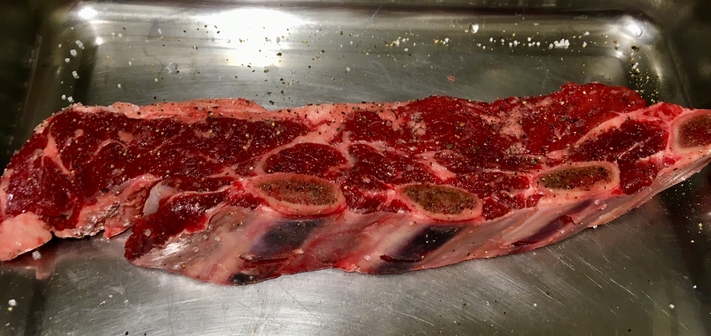 TIRA DE ASADOという種類のお肉を購入。日本でいうと骨付きカルビの部位だそうです。なんと1kg、10€以下(9.5€)。アルゼンチンでBBQをする際によく食べる部位とのこと。
