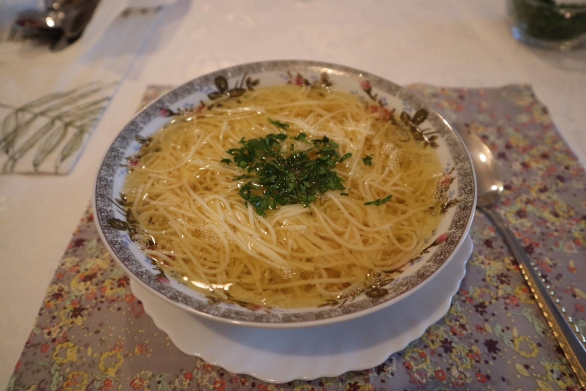 フラキは、チキン・にんじん・玉ねぎ等で出汁をとって、それに新鮮なトリッパが煮込まれている。